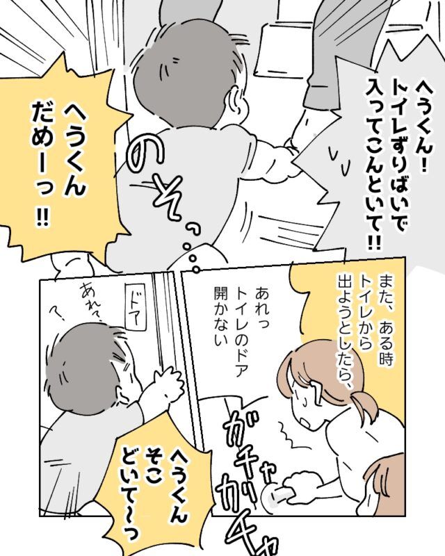 私とくうちゃんが入っているトイレにへうくんがずりばいで入ってこようとしたり・・・。