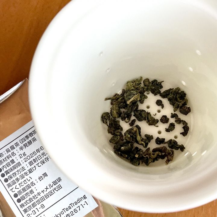 2gって意外と少ない・・・と思いましたが、あとでわかる通りこれで丁度良かったです!四季春茶は、台湾の凍頂山の麓で栽培された烏龍茶の一種で、蘭の花のような香りのするまろやかな味のお茶とのこと。お湯を注ぐ前はあまり香りは感じませんでした。