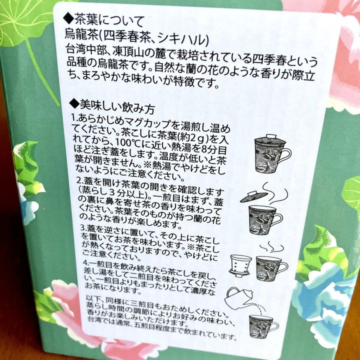 マグカップの箱の裏には、丁寧なお茶の入れ方の説明書きがありました。なので、その説明の通りに、一緒に入っていた四季春茶を淹れてみました。