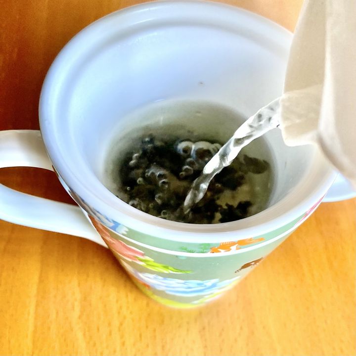 3分後、蓋を開けてみるとびっくり!お湯を入れる前の丸く縮こまった茶葉が、すっかり“葉っぱ”に戻っていました。茎のようなものまであり一体どこから現れたのかとっても不思議でしたが、とにかく茶葉は開いたようです。とってもいい香りが漂ってきます。