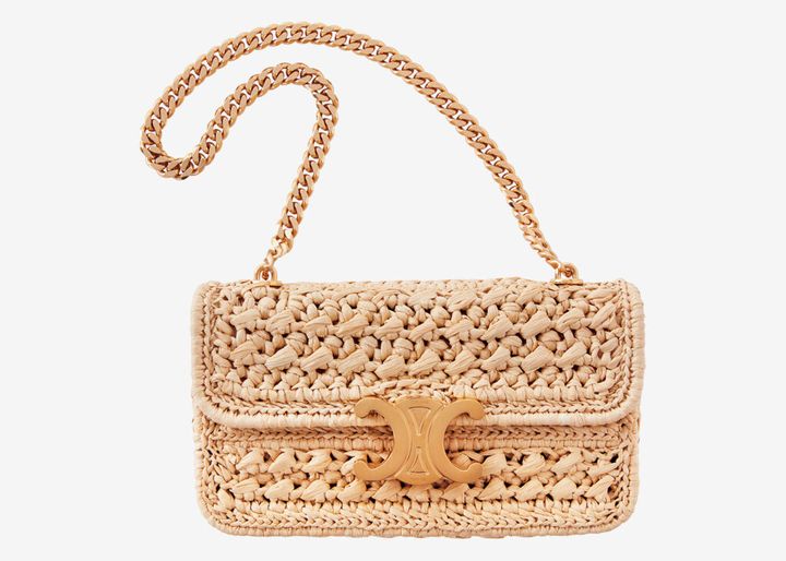 〈セリーヌ バイ エディ・スリマン〉から、これからの季節にぴったりのバッグを。緻密に編まれたラフィアの軽やかな風合いに、メゾンの象徴である"トリオンフ"モチーフの留め具とチェーンが華やかに映える。5月15〜28日に伊勢丹新宿店本館1階ザ・ステージで開催される、ポップアップストアでの限定アイテム。