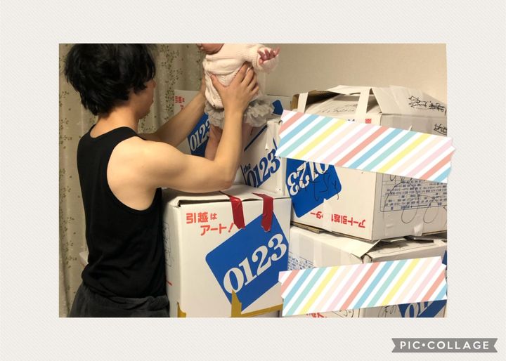 そうなんです、わが家まだ生後7カ月の子がいまして、世話があるので寝てる時にチマチマやるしかなくてですね。寝た時を見計らってダンボールを用意して、物を捨てながら詰めていました。写真を見るとわかるのですが、私のテープの貼り方が疲労感を彷彿とさせていますね。