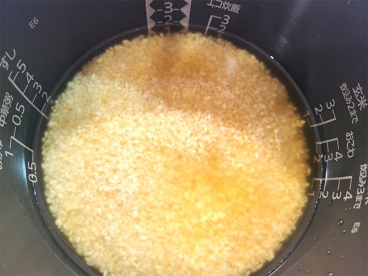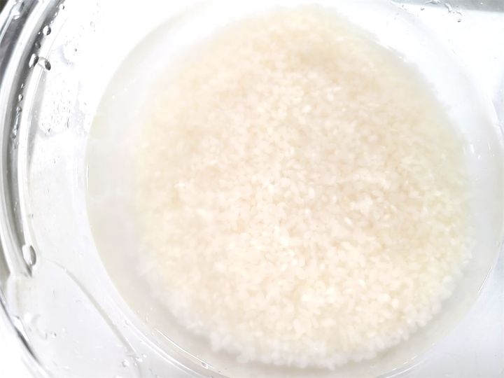 1.  米を洗い、15~20分ほど水に浸しておきます。時間が経ったら水を切っておきます。