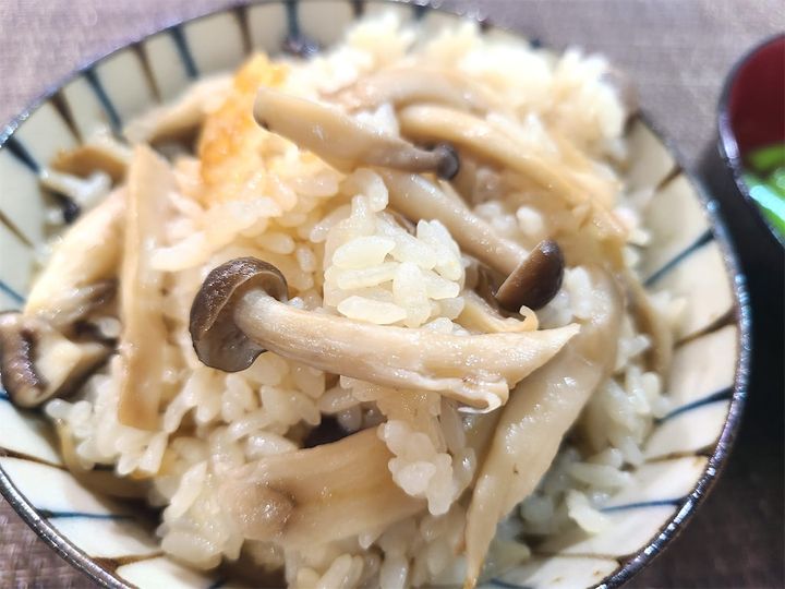焼き色をつけるまでしっかり炒めたきのこの香りが、食べる前から家中に広がっていて、どんどん期待値は上がっていました。きのこは炒めれば炒めるほど旨味がギュッと増すんですね!バターのコクときのこの旨味がギューッとつまっていて、きのこしか入っていないのにものすごく満足感の高い仕上がりになっています。余計な味付けをしていないので、きのこの旨味に集中できます!きのこ好きにはたまらない炊き込みご飯ですね♪みりんを少し足して甘みを加えてもおいしいかもしれません。