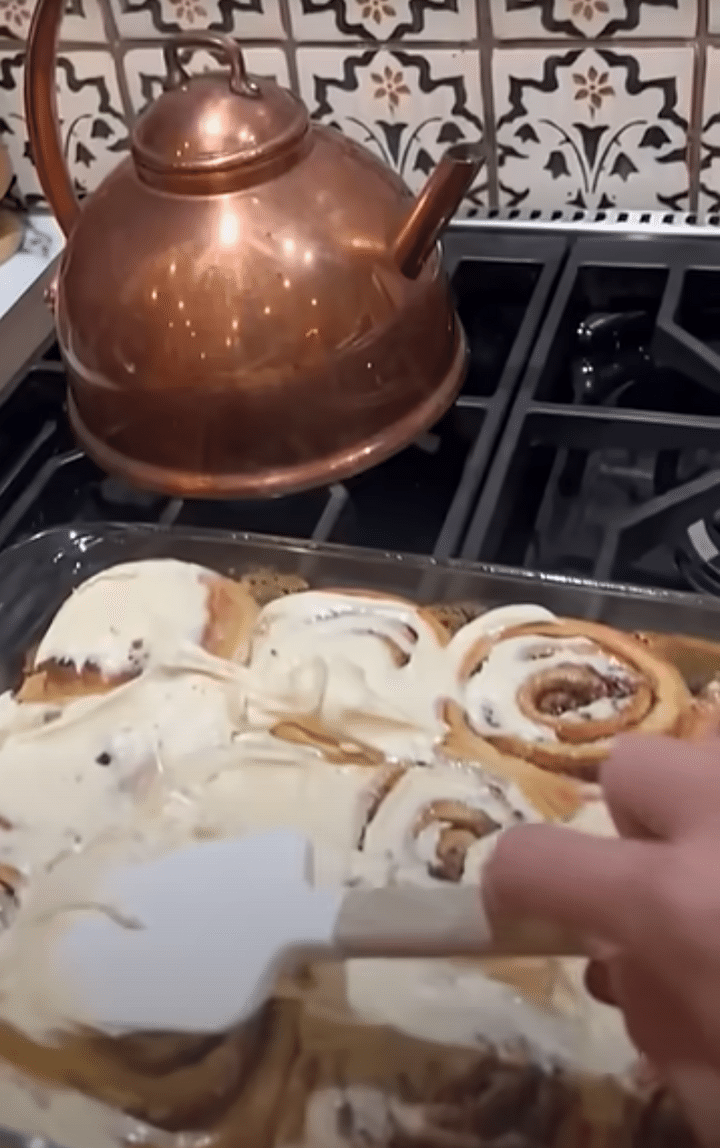 テイラーがキッチンで何を作っていたのかは不明ですが、動画の後半でテイラーがシナモンロールにフロスティングしている様子が捉えられており、これはトラヴィスが試合前に食べるお気に入りの軽食であることが知られています。
