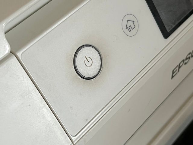 手垢がついてしまうスイッチなどもシートタイプのセスキを使えば簡単にお掃除できます。こちらは手アカでかなり汚れているプリンターの電源ボタン。