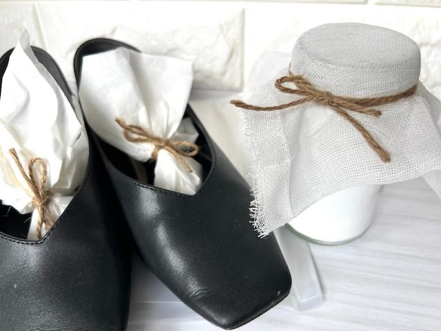 重曹は匂い取りとしても効果が期待できるとのこと。瓶に粉末タイプの重曹を入れてガーゼで蓋をし靴箱に入れてみました。さらに一足にはティッシュに包んで直接靴に入れて実験。