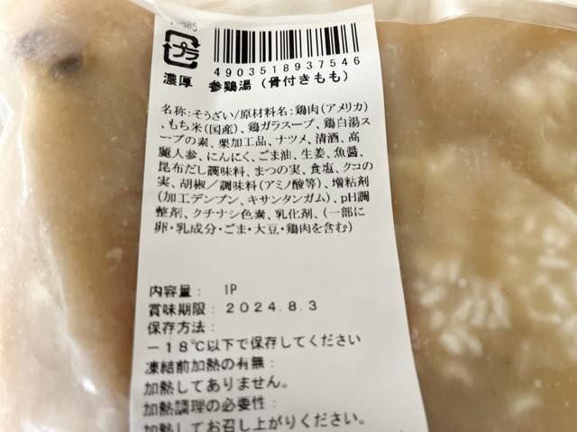 丸鶏一匹を使うので、手間もかかり、日本で食べると高額なのも特徴です。しかし、ロピアで見つけた時はまさに歓喜! 通常、丸鶏の参鶏湯だと2000円以上はしますが、ロピアは1555円(税抜)、骨付きももだと666円(税抜)ではありませんか! 参鶏湯までお得に買えるなんて嬉しすぎます。今回は骨付きももをチョイスしました。
