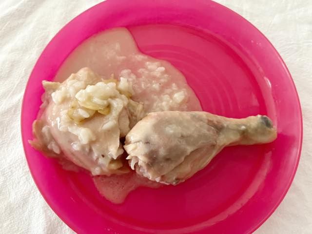 器に移していただきます。じっくり煮込まれた丸鶏の濃厚スープ、ホロホロになるまで柔らかくなった鶏肉、もち米がたまらなくおいしい! 驚くほどの再現度です。