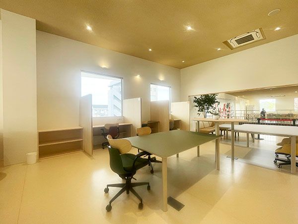 自身の仕事ではまちなか、郊外いろんな場所のコワーキングスペースを利用させていただくことが多いのですが、これほどまでに広々としたコワークスペースははじめて。また、自然光が惜しみなく降り注ぐ窓際席がすてきでとても心地よくお仕事がすすみます。