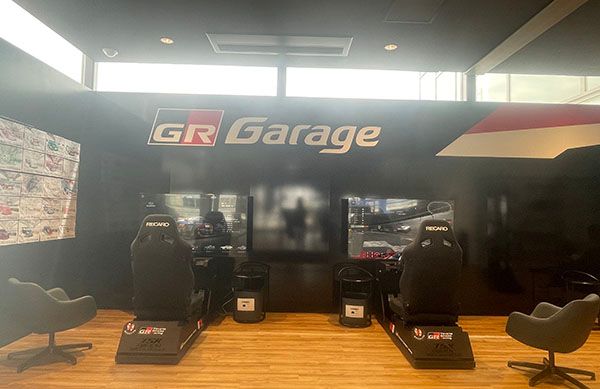 2階「GRガレージ松山」は、レーシングシミュレーターやカスタムパーツの展示、コレクションルームなどクルマファンが集い語らい楽しめるエリアになっています。