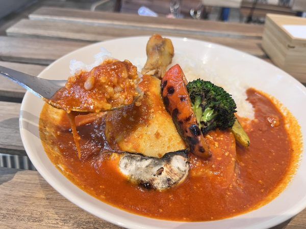 そしてお味ですが、確かにスパイスの効いた美味しいカレーなのですが、どちらかと言うとシチューっぽい気がします。 シェフに聞いてみたところ、コチラのカレーはハンガリーの煮込み料理を参考にしているのだそうです。それをスパイスでカレーに寄せていて、なんとナッツも使用しているのだそうです!市販のカレールーのように小麦粉も使っていない為、サラリとしているのも大きいかもしれません。 八王子の市場でハンガリー料理だなんて斬新ですね☆