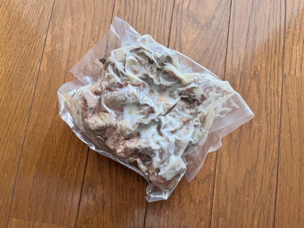 肉八工房さんのシェフが牛すじの下処理を済ませてくださった物で、わが家の冷凍ストック品のひとつです。