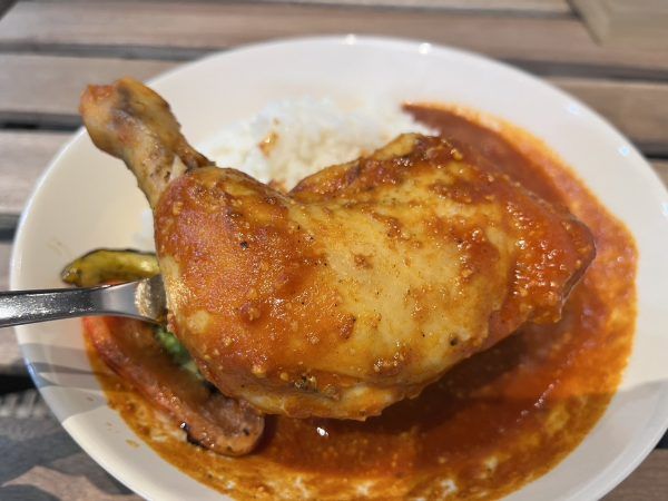 お肉屋さんらしくチキンレッグがどどーんとカレーにのっていて、インパクト抜群です!