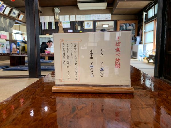 こちらのお店、テレビ・雑誌等で紹介されている山形県ではかなりの有名店でした。 仙台人の私は有名店と知らず「そば食べ放題」の情報だけで行ってしまいましたが、オープン前から数組のお客さんが外で待っていました。