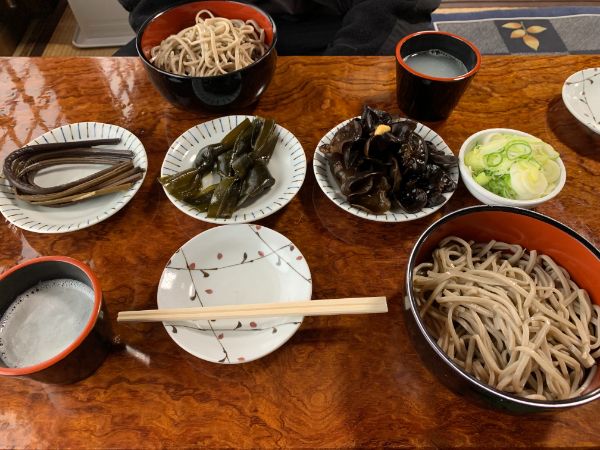 そばは、そばつゆにつけて食べるものと思っていましたが、こちらでは大根おろしのタレにそばつゆを入れて食べます。