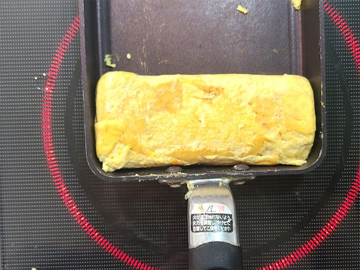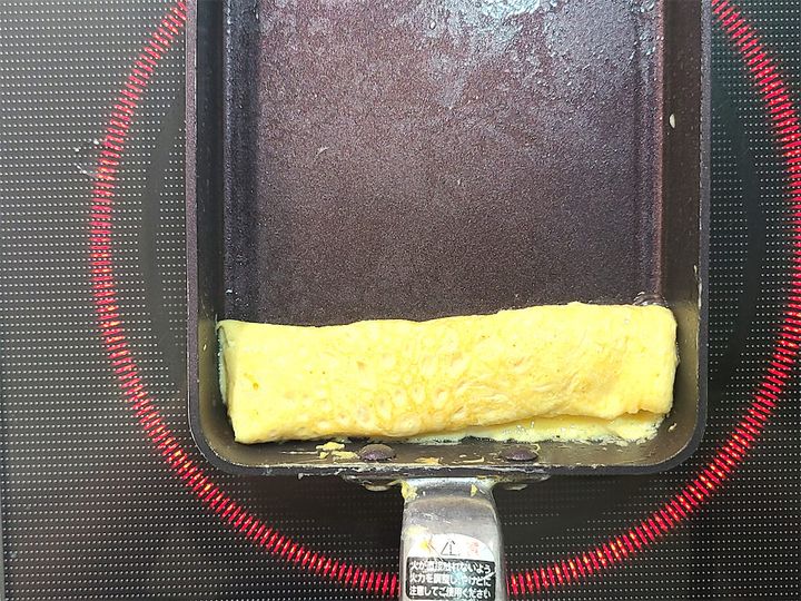 7. 卵液がなくなるまで繰り返し、最後まで巻いたら出来上がりです♪