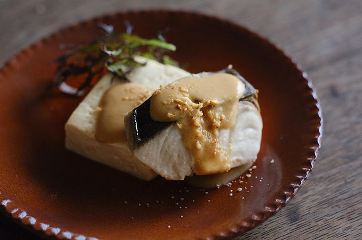 3. 上品な美味しさ"蒸し魚と豆腐の胡麻酢ダレ和え"
