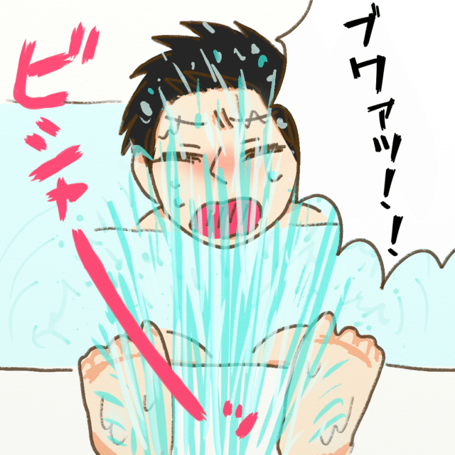 二ヒヒと笑う次女ちゃんカワイイ!シャワー勢いよく出ちゃう時ありますよね(笑)