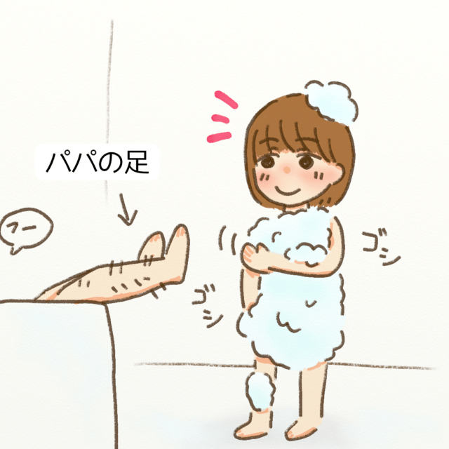 3. パパの足洗ってあげる!親子で楽しいお風呂タイム|いろとりどり絵日記