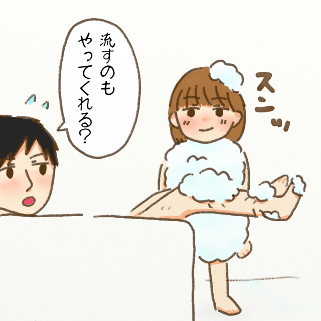 足の泡だけでなく、シャワーでパパの顔まで流しちゃった次女でした(笑)