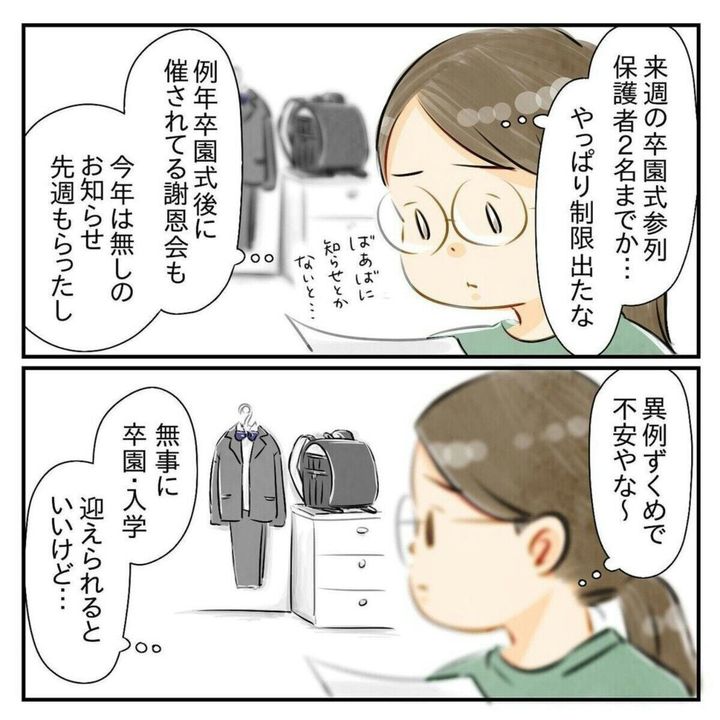 それは、新型コロナウイルスの影響が少しずつ強くなったころ。星田つまみさんの地域でも卒園式参列への人数制限・謝恩会の中止など、例年とは異なる措置が取られることになっていました。