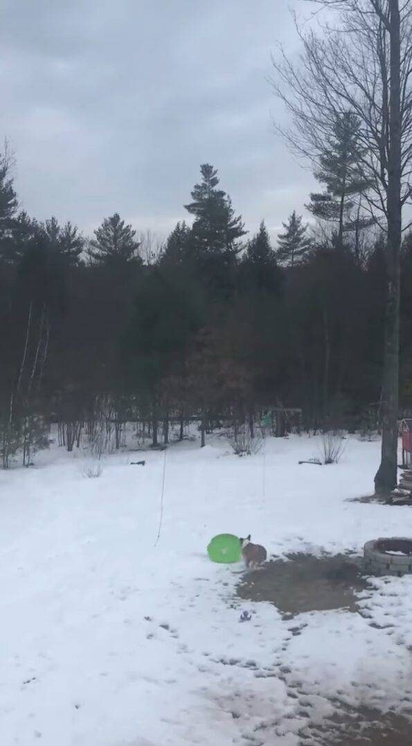 動画には、雪遊びをする愛犬の元気な様子が捉えられています。