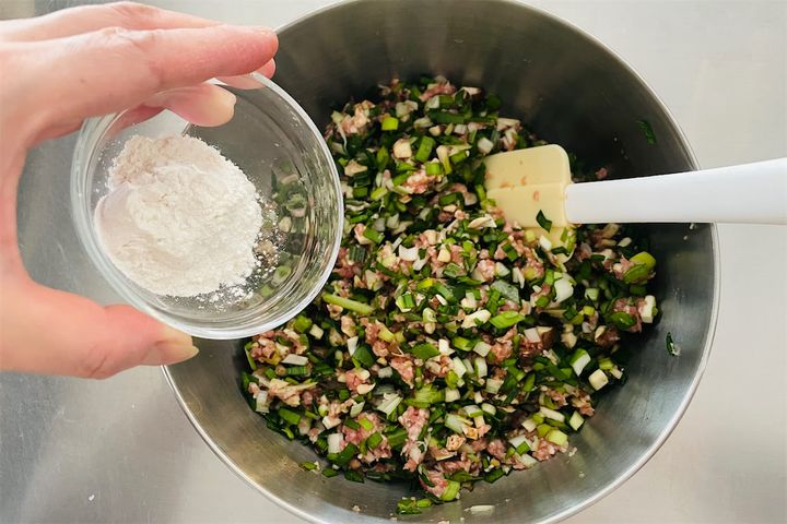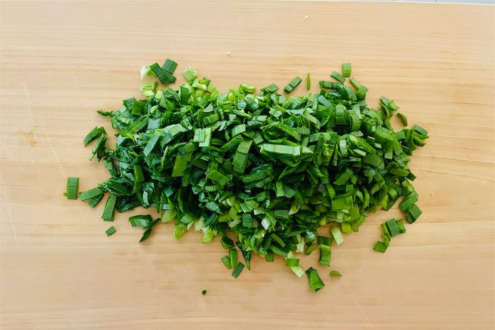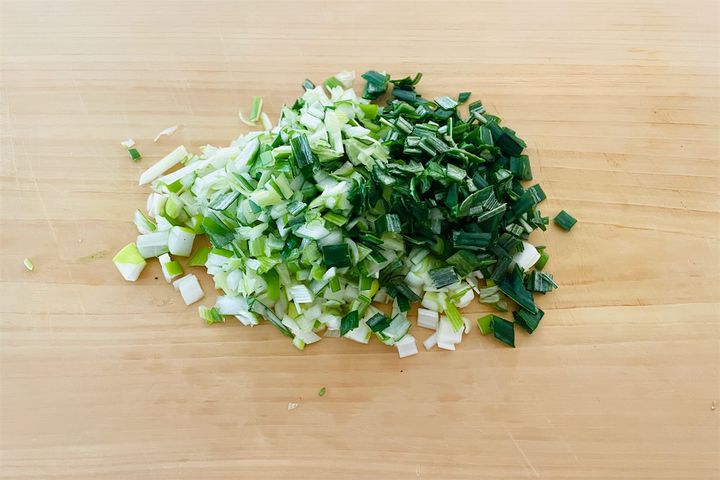 にら、長ねぎ、しいたけはみじん切りにする。しょうがは絞り汁をとっておく。