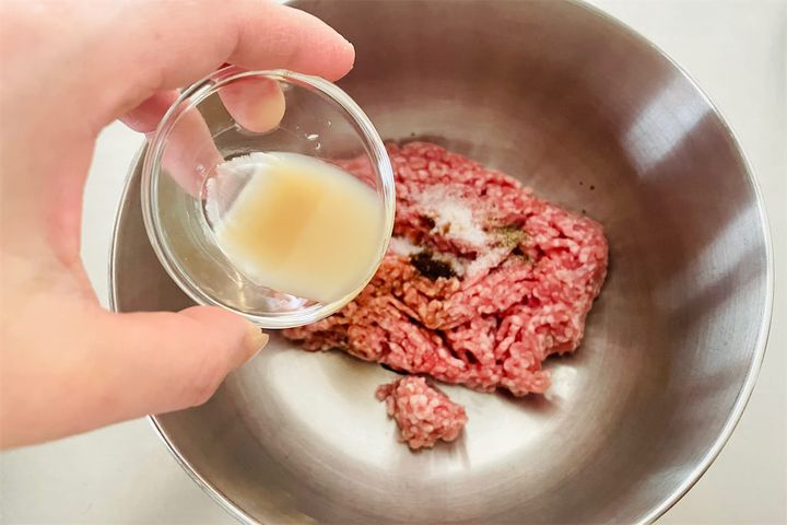 3.豚ひき肉に[A]と2を入れてよく混ぜ、片栗粉も加え混ぜる。