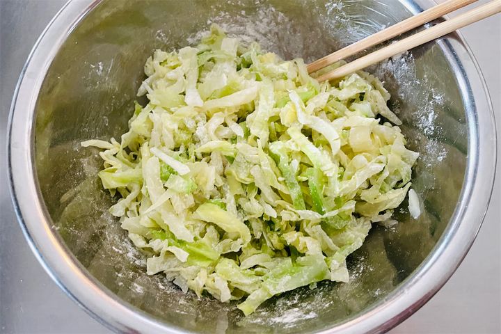 キャベツはあとで細切りにするので、破れてしまっても大丈夫です!