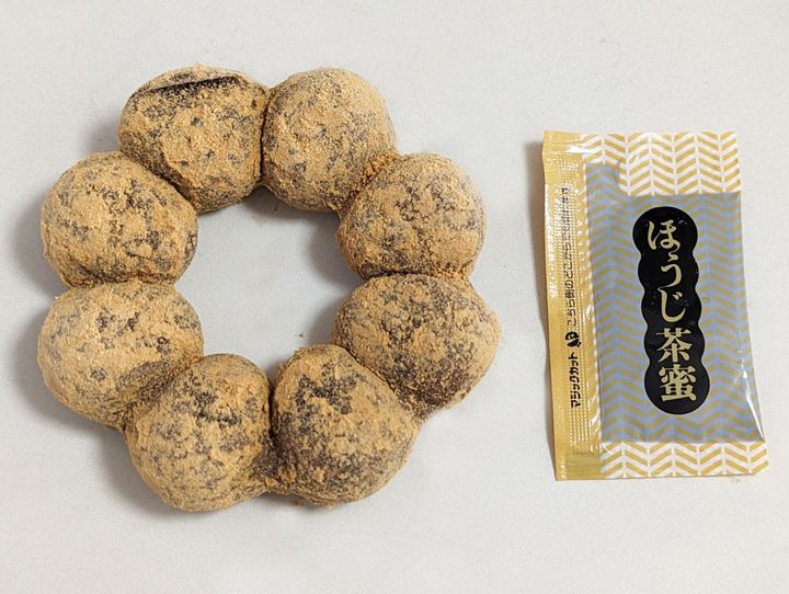 ほうじ茶ときな粉の相性はすごくいいし、そこに追いほうじ茶的に蜜をかけると味変が楽しめます。ポン・デ・リングは形状的に分けやすいので、蜜の有り無しで食べ比べするのもおすすめです!