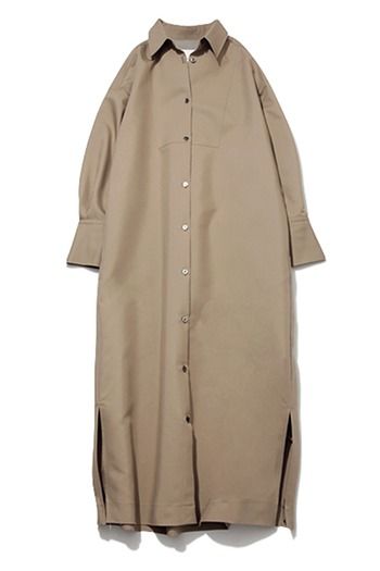 シャツワンピース 66,000円/ウィム ガゼット(ウィム ガゼット ルミネ新宿店) 「グレイッシュな色みと生地のハリ、縦落ちの形がシャープな表情を演出し、カジュアルにも辛口にも転ばせられます」(スタイリスト・船戸唯さん)