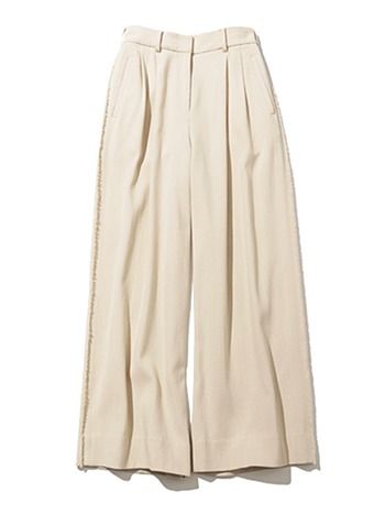 パンツ 29,700円/Ballsey(トゥモローランド) 「今気になるのは、黄みを帯びたまろやかな色。サイドフリンジのクセも相まって、シャツやブラウスと合わせても、適度なハズしになってくれそう」(スタイリスト・出口奈津子さん)