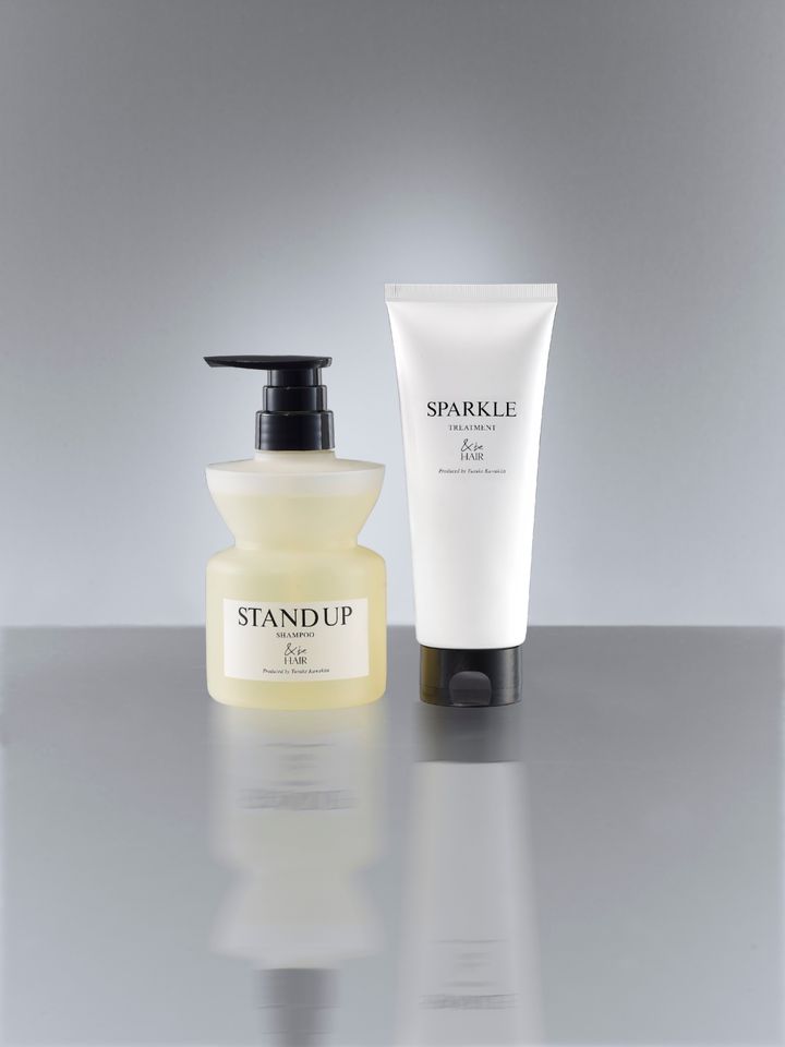 左から:&be スタンドアップシャンプー 400mL ¥1,540、同 スパークルトリートメント 200g ¥1,540 ※共に4月30日発売