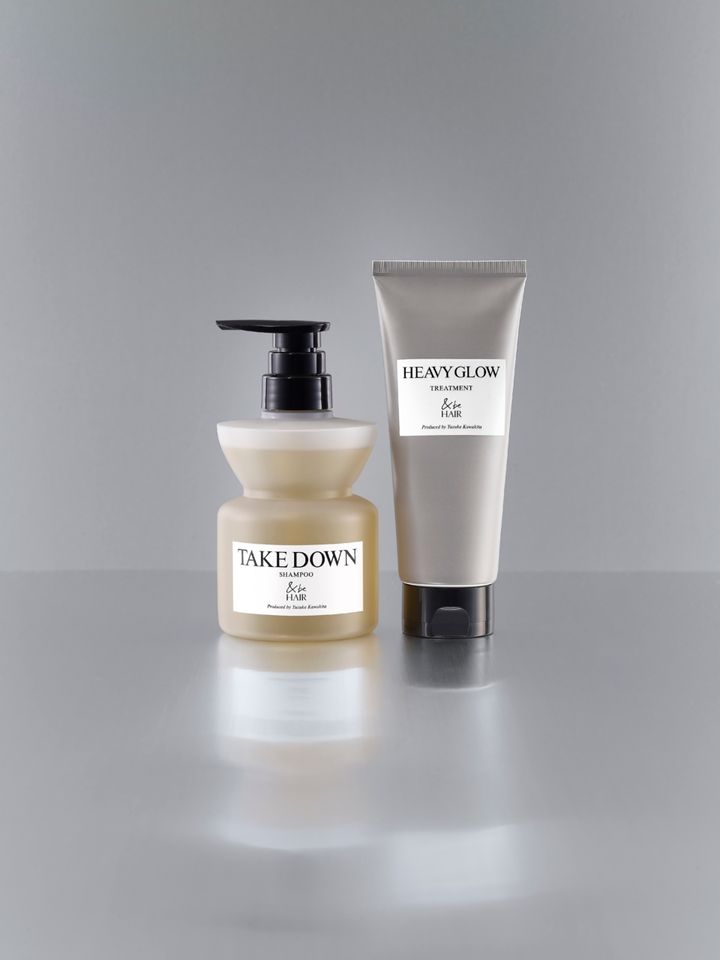 左から:&be テイクダウンシャンプー 400mL ¥1,540、同 ヘビーグロウトリートメント 200g ¥1,540 ※共に4月30日発売