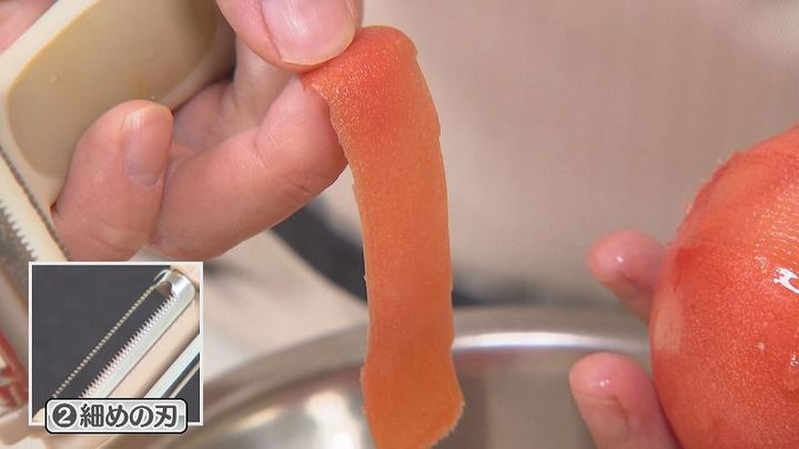 細めの刃は、モモやトマトなど、柔らかく皮が薄い食材の皮むき用。