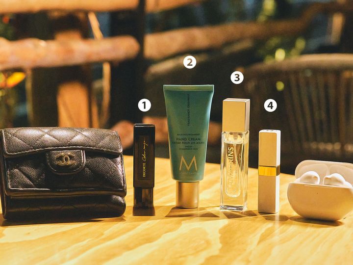普段あまり大きいバッグを持ち歩かないので、お財布はコンパクトなシャネルを愛用。イヤホンはジムで走るとき用です。