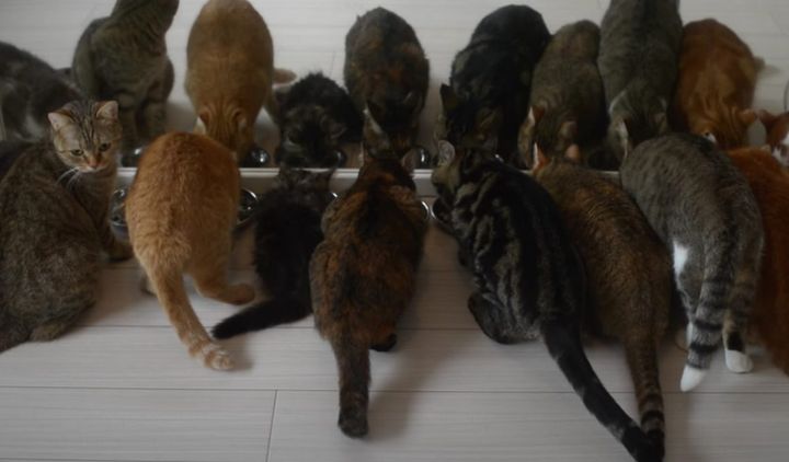 み〜んなで鏡をのぞき込んで たくさんの猫さんに鏡を見せてみたら。