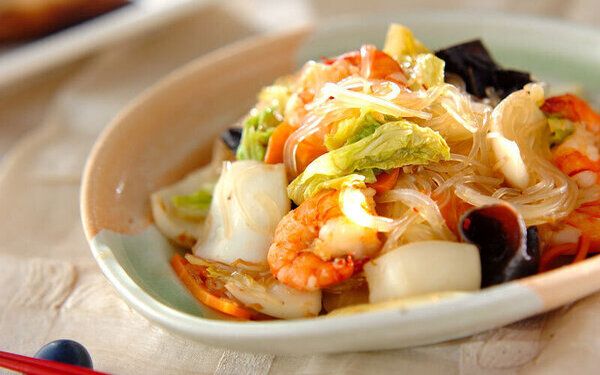 エビやイカなどの魚介類を使った炒め物は中華料理のなかでも人気がありますよね。xo醤やオイスターソースなどで作ったスープを吸った春雨と相まって、贅沢な味わいを堪能できますよ。辛みをプラスしたい方は、炒めるときに輪切り唐辛子を加えても良いでしょう。