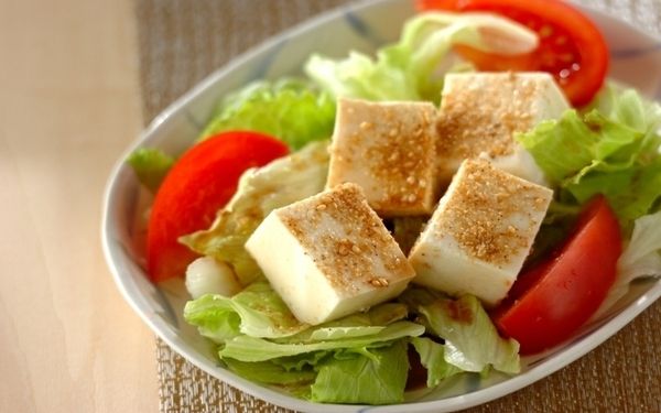 中華料理屋さんのような献立にしたい日にイチオシなのがこちら。絹ごし豆腐やレタス、トマトなどストックしていることが多い食材で作ったサラダは間違いなしの美味しさです。中華ドレッシングはゴマ油やしょうゆなどで簡単に。酢を加えてさっぱりいただくのも良いですよ。