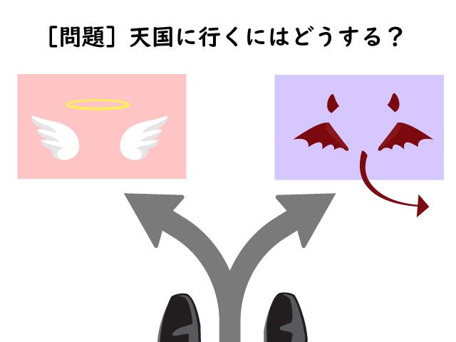 ですが、悪魔が「地獄」と答えたくなるような質問をすれば、天国を指すので、聞き方がポイントとなります。