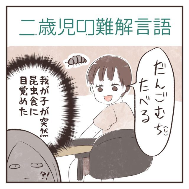 2歳長男みつけくん、0歳次男りゃんくんのママであるみつけままさんから、困惑したお話です。ある日、突然みつけくんが「ダンゴムシ食べる」と言い出して・・・?