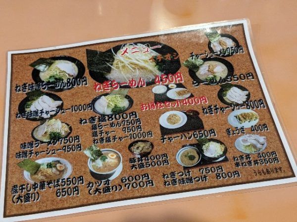 この「ねぎらーめん」にはチャーシューがありません。一方「らーめん」にはあるようです。値段が逆転している理由はそこにあるのかもしれません。