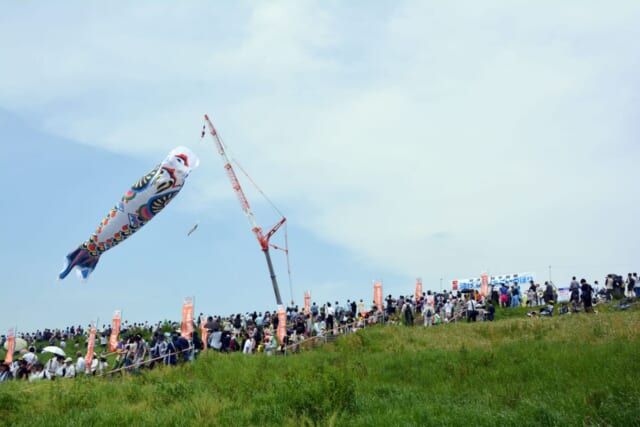 「ジャンボこいのぼり遊泳」が開催される利根川河川敷緑地公園