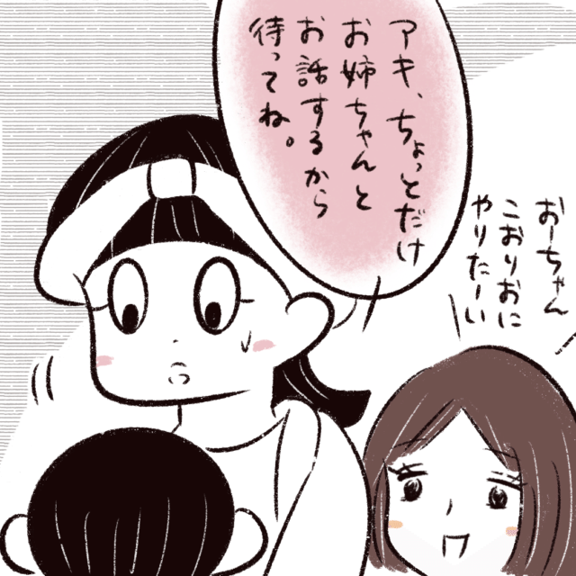まるさんは公園にまだ小さいおーちゃんがひとりでいることが気になって仕方がありません。