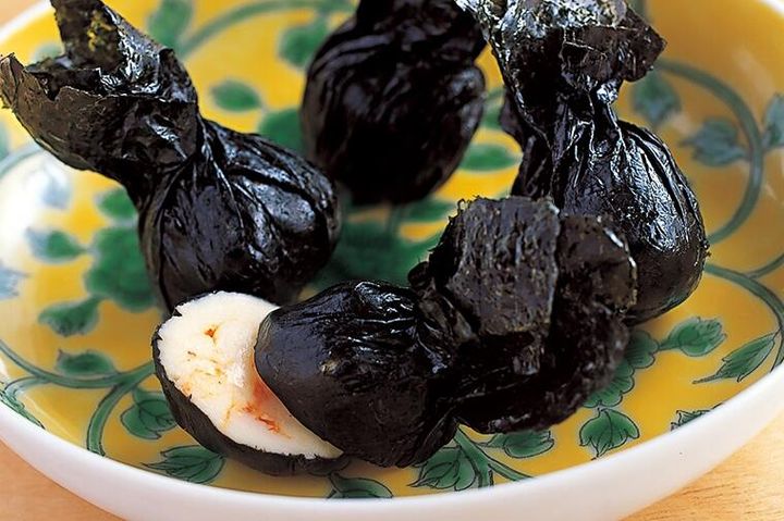 わぁ、これ何?と、家族にも大受けしそうなかわいい姿。手が込んだ料理に見えるけれど、スライスチーズに豆板醤を塗って丸く握り、海苔で丸めれば出来上がり。
