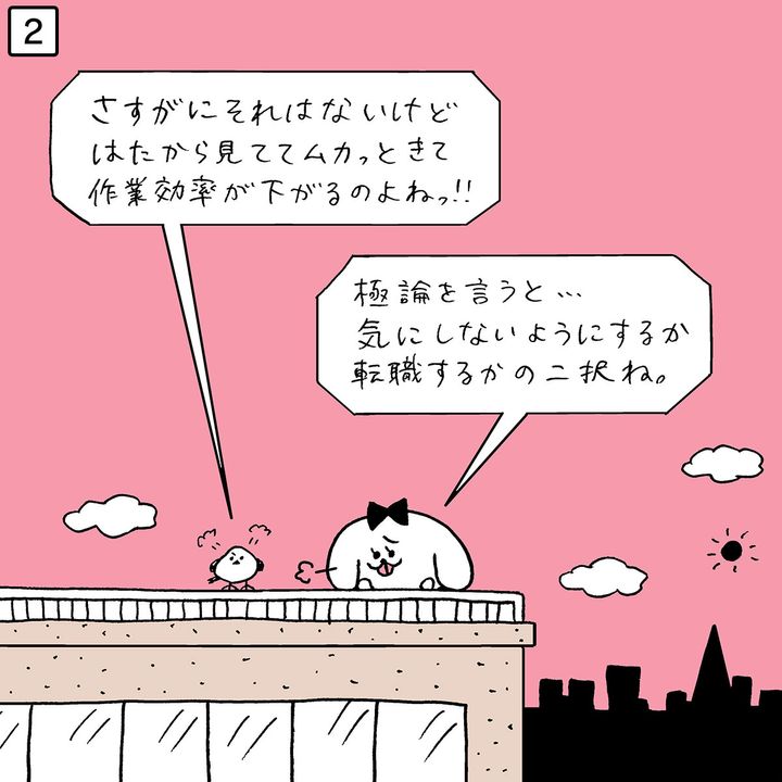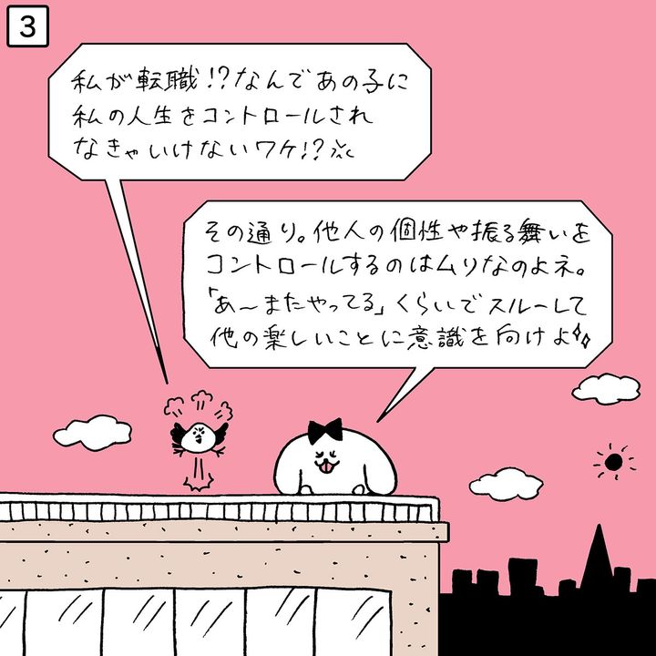 「男性と話すとき、無意識に上目使いしちゃうんだな、なんか可愛いな」「くちゃくちゃ食べる同僚が苦手だけど、ちょっと猫ちゃんみたいだな」「不思議な語尾が気になって仕方ないけど、もはや面白いのかもしれない」……。そんな風にこの際「面白がる」方向に自分の思考を無理やりもっていくことで、負の感情からできるだけ解放されるように努めています。
