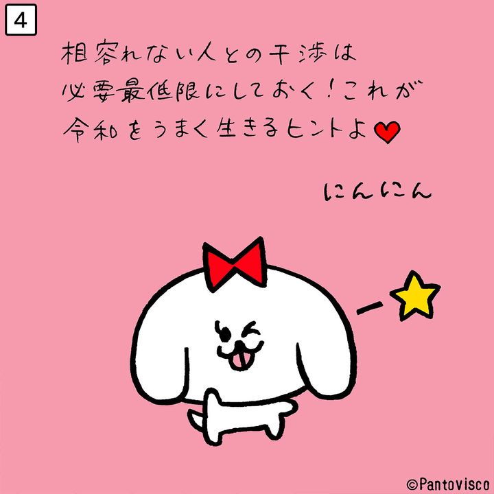 VOCE連載でもおなじみ、クリエイター・パントビスコさん。日常のちょっとしたクスッと笑える話や、迷える人生に一筋の光をさしてくれるようなイラストが人気です。今回は大人気キャラクター・にんにんがVOCEに登場。あなたの人生のちょっとしたヒントになるようなストーリーを4コマ漫画形式でお届けします。
