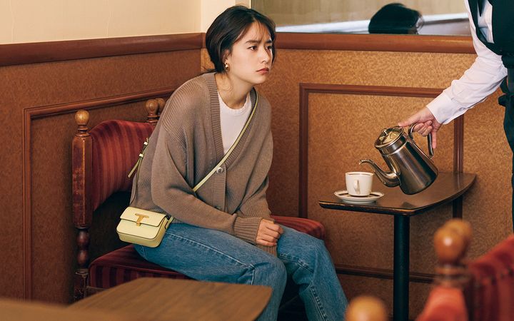 お金がないだろうからと、マスターがバイト代を前払いしてくれた。昨日店前で見た人たちの服装が洗練されていて素敵だったので、私もさっそく令和流のベーシック服を買ってみた♪オシャレすることでなんだか元気が出るもんね。マスター、ちゃんとバイトしてお返しします!そして、あの男の人、リョウにすごく似ていたな…。バッグ¥39,600(ジョイ・グライソン/アルアバイル)ピアス¥85,800(モニス/フォーティーン ショールーム)[マスター]メガネ¥46,200(アイヴァン/アイヴァン 東京ギャラリー)その他/スタイリスト私物