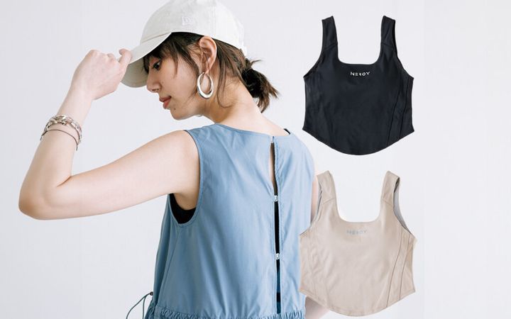 コンパクトな見た目ながら、お腹は しっかり隠れる安心丈。丸みを帯び た裾のカッティングにより、アウト して着た時もスタイル アップ効果抜群。カッ プは取り外し可能。